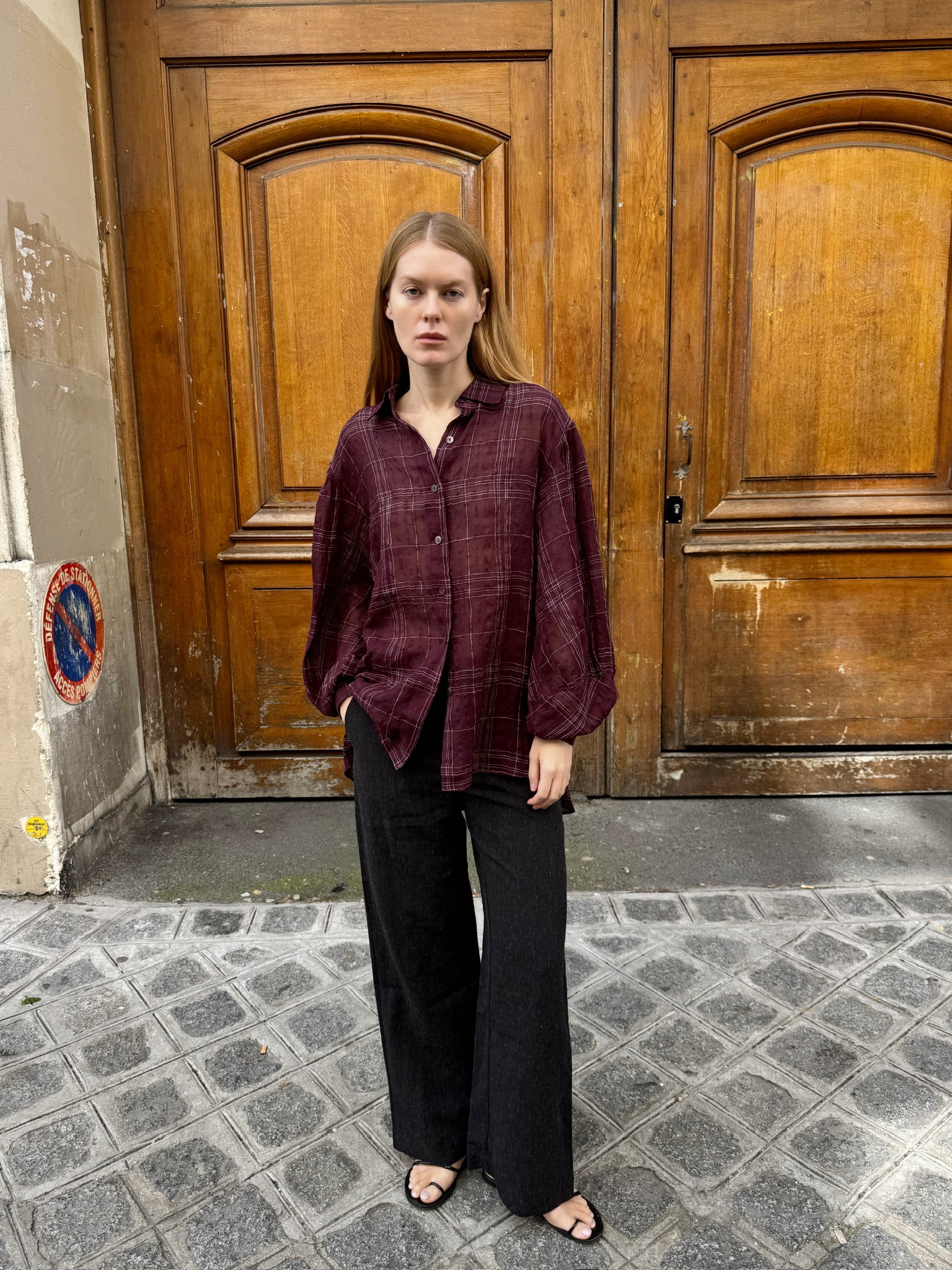 Sold outBurgundy Red Pleated Linen Shirt